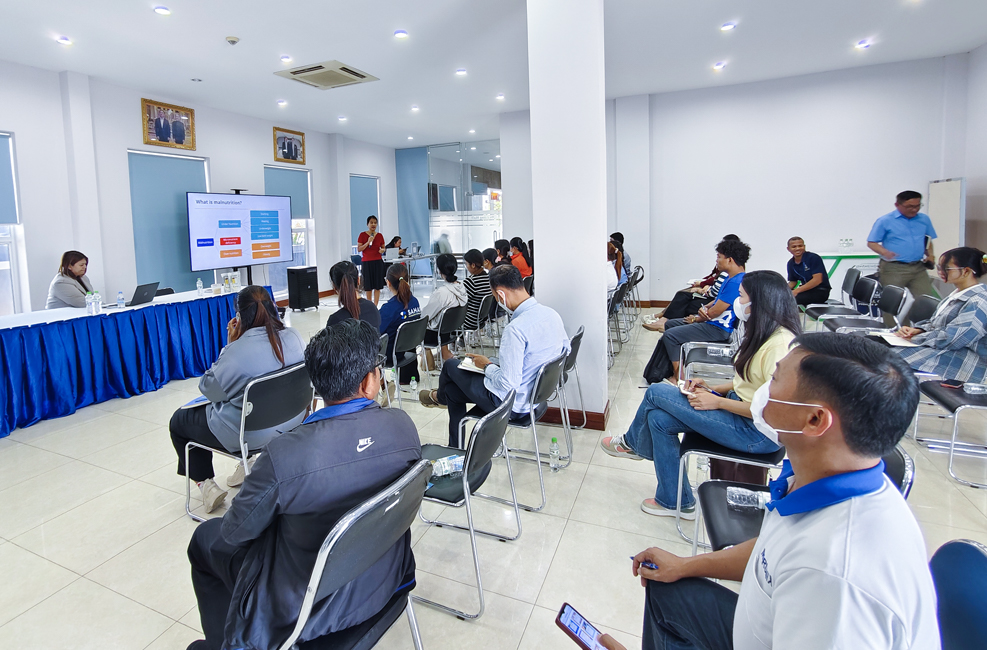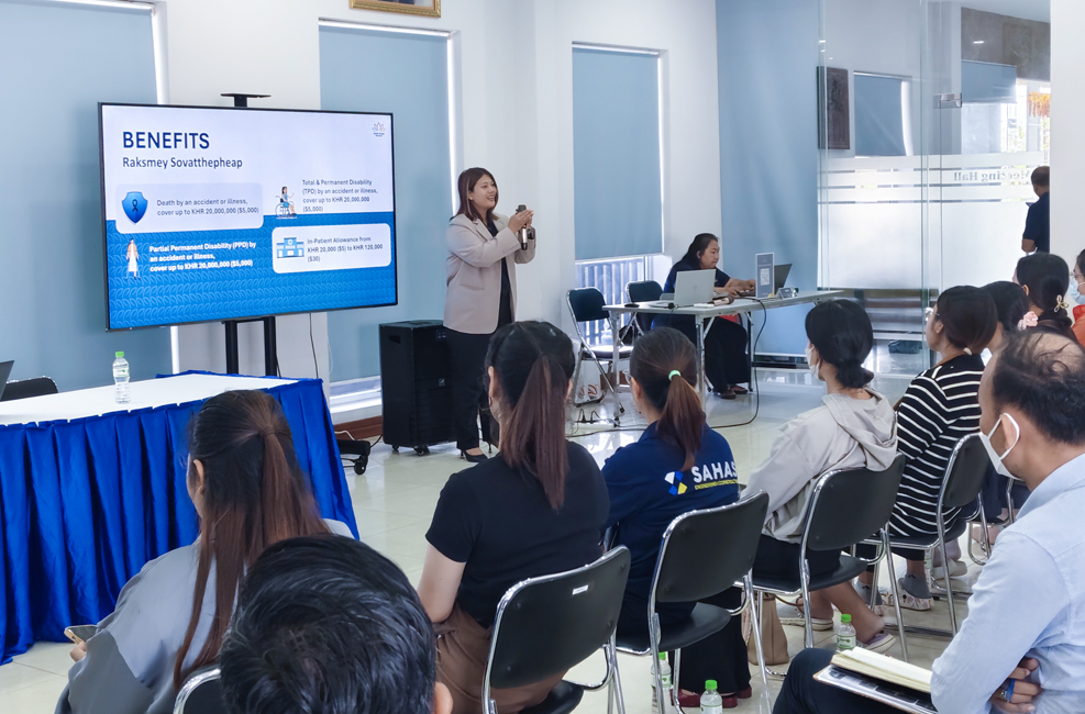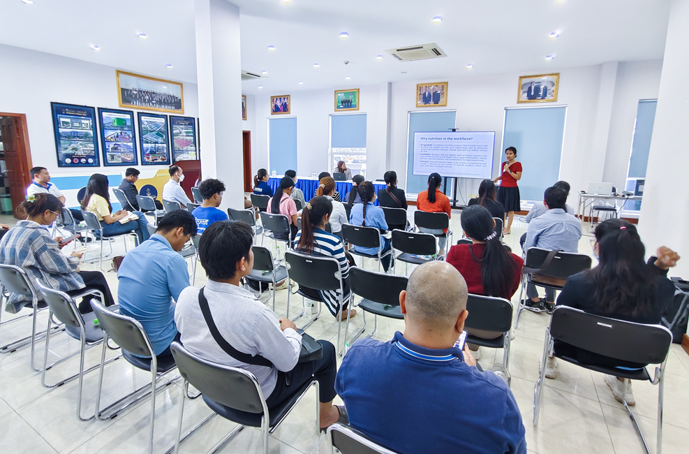 The meeting covered several key topics. These included a presentation on the Introduction to Fortified Rice by Ms. Din Seanglay from the United Nations World Food Programme (WFP). In addition, Ms. Sam Pisey from Royal Group Insurance shared updates regarding the transition from Camlife Insurance to Royal Group Insurance. The agenda also featured reminders on quotas and the work permit process for foreign workers through the FWCMS system, as well as a session on self-inspection in the SICMS, delivered by H.E. Pol Chandara from the Ministry of Labour and Vocational Training.