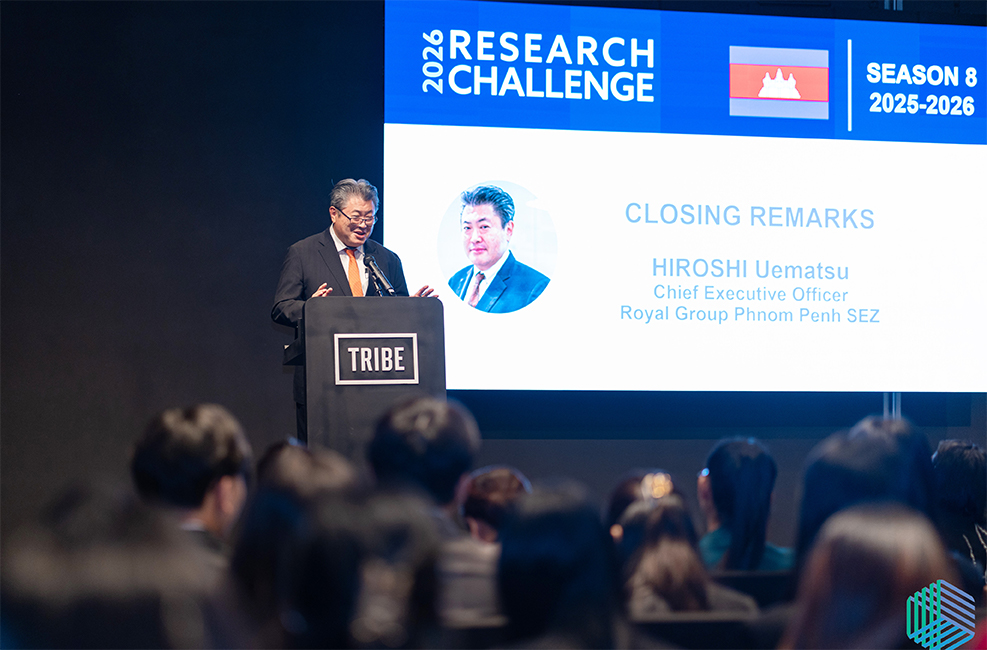 Phnom Penh, 24 February 2026 – Royal Group Phnom Penh SEZ Plc. (PPSP) participated in the Closing Ceremony of the CFA Institute Research Challenge Season 8 (2025–2026), organized by the Cambodia Community of Investment Professionals and held at TRIBE HOTEL PHNOM PENH. The competition featured student teams from American University of Phnom Penh, CamEd Business School, International College of National University of Management, and Paragon International University.