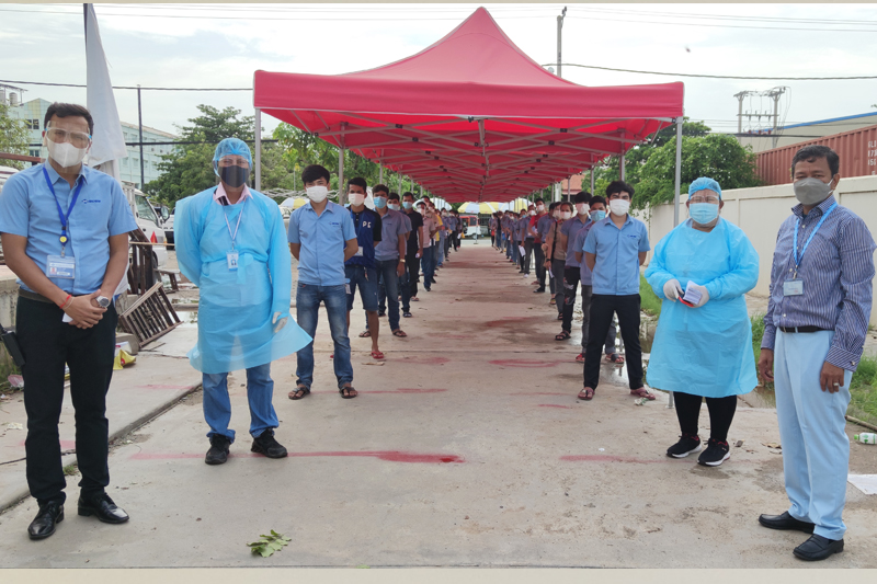 With the support and facilitation from the Administration of Khan Kombol, Ministry of Labour and Vocational Training, and PPSEZ, the first dose of vaccination campaign was launched and administered by military doctors and nurses from the Ministry of National Defense on Friday, 7 May 2021, in PPSEZ.