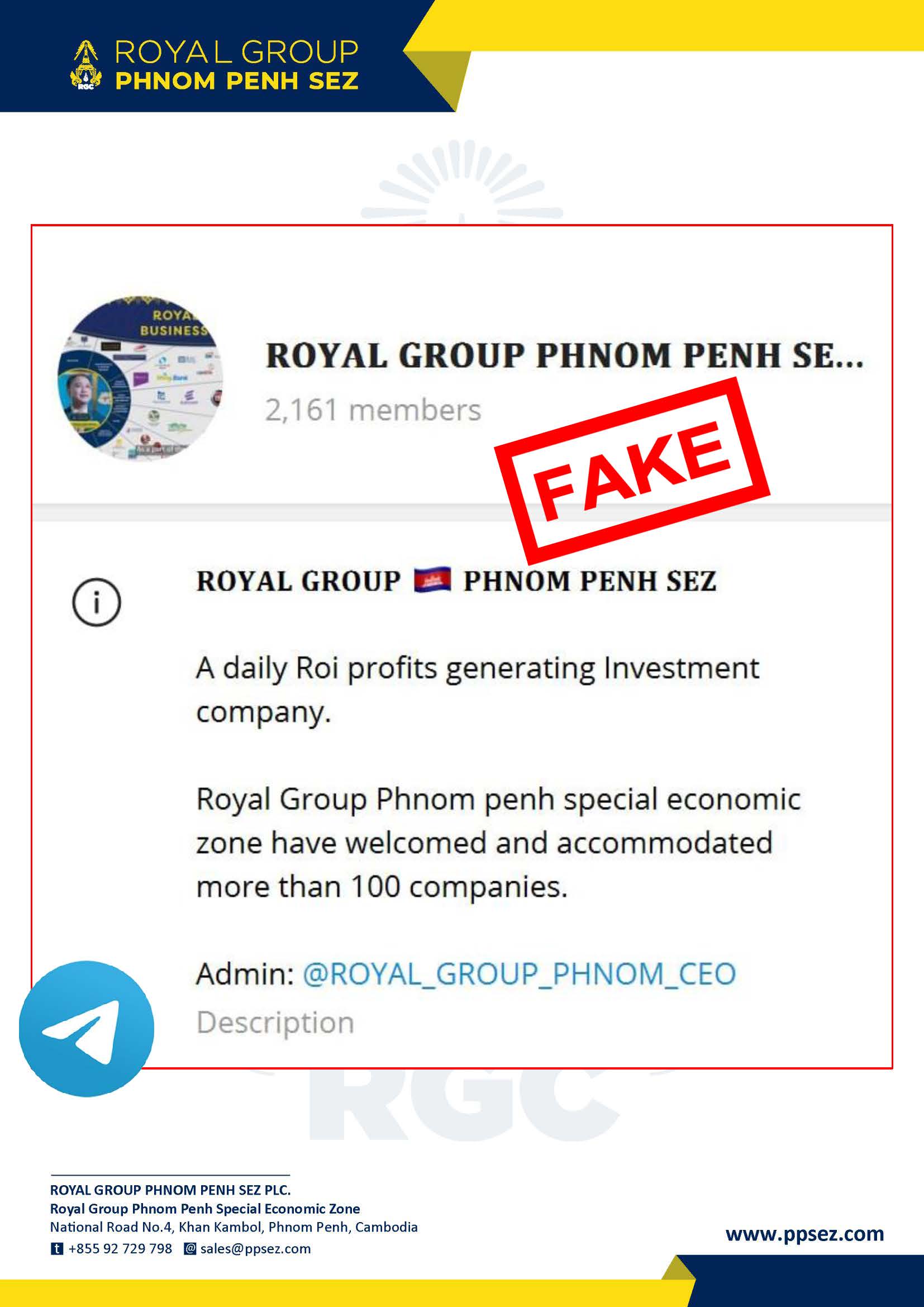 Telegram Channel Name: ROYAL GROUP PHNOM PENH SEZ