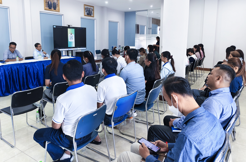 The meeting addressed several key topics, including a free recruitment service introduced by Mr. CHHOM Sokhoeurn from the National Employment Agency (NEA). Additionally, Ms. POL Polin from CamLife Insurance presented a new life insurance product, while Ms. Saroeurn Leakhena from CAPRED shared information about their Day Care Service. The agenda also included a reminder about self-declaration in the SICMS system and an update on labor laws and regulations, delivered by H.E. Pol Chandara from the Ministry of Labour and Vocational Training (MoLVT).