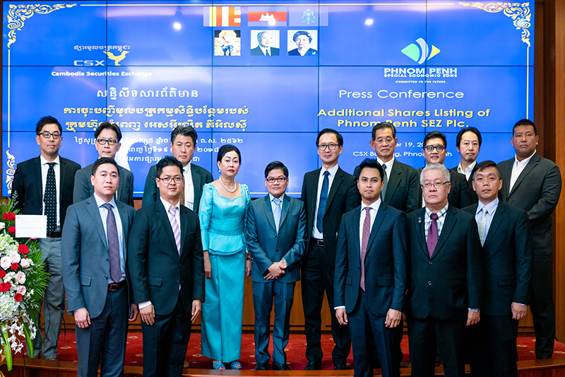 Phnom Penh, 19th October 2018 – On Friday 19th, Phnom Penh SEZ Plc. (listed on the Cambodian Stock Exchange under PPSP), announced issuing and listing of new 14 million shares to strategic investors including 1) JWD Infologistics Plc., a regional leading logistics company from Thailand and 2) Mr. Henry Ng Lian Soon, the Founder and Chairman of Bok Seng Group, a leading Singaporean regional provider of Integrated Project & Marine Logistics Management. This is considered as the first-ever private placement transaction by listed company in Cambodia. This conference was congratulated by H.E. Sou Socheat, Chief Executive Officer of Cambodia Securities Exchange (SECC), and H.E. Hong Sok Hour, Chief Executive Officer of Cambodia Securities Exchange (CSX).