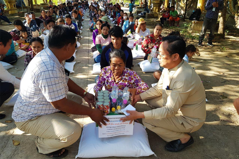 gifts including two tons and half of rice, instant noodles, canned fish and other daily foodstuff to 101 families