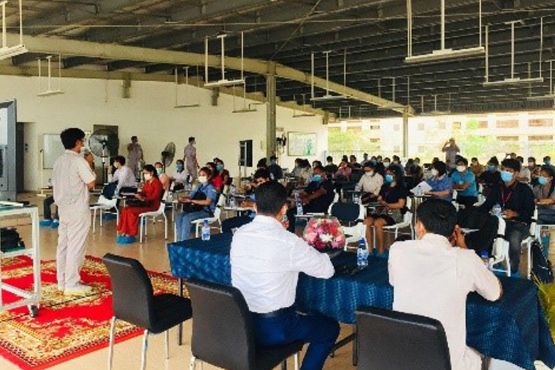 On Monday, 6 April  2020, in collaboration with Minebea (Cambodia) Co., Ltd., Phnom Penh SEZ Plc. (PPSP) held a sharing session with 56 participants from different factories inside PPSEZ at Minebea (Cambodia) Co., Ltd. The main topic of this session was to share “Current Actions and Precautions for COVID-19”.