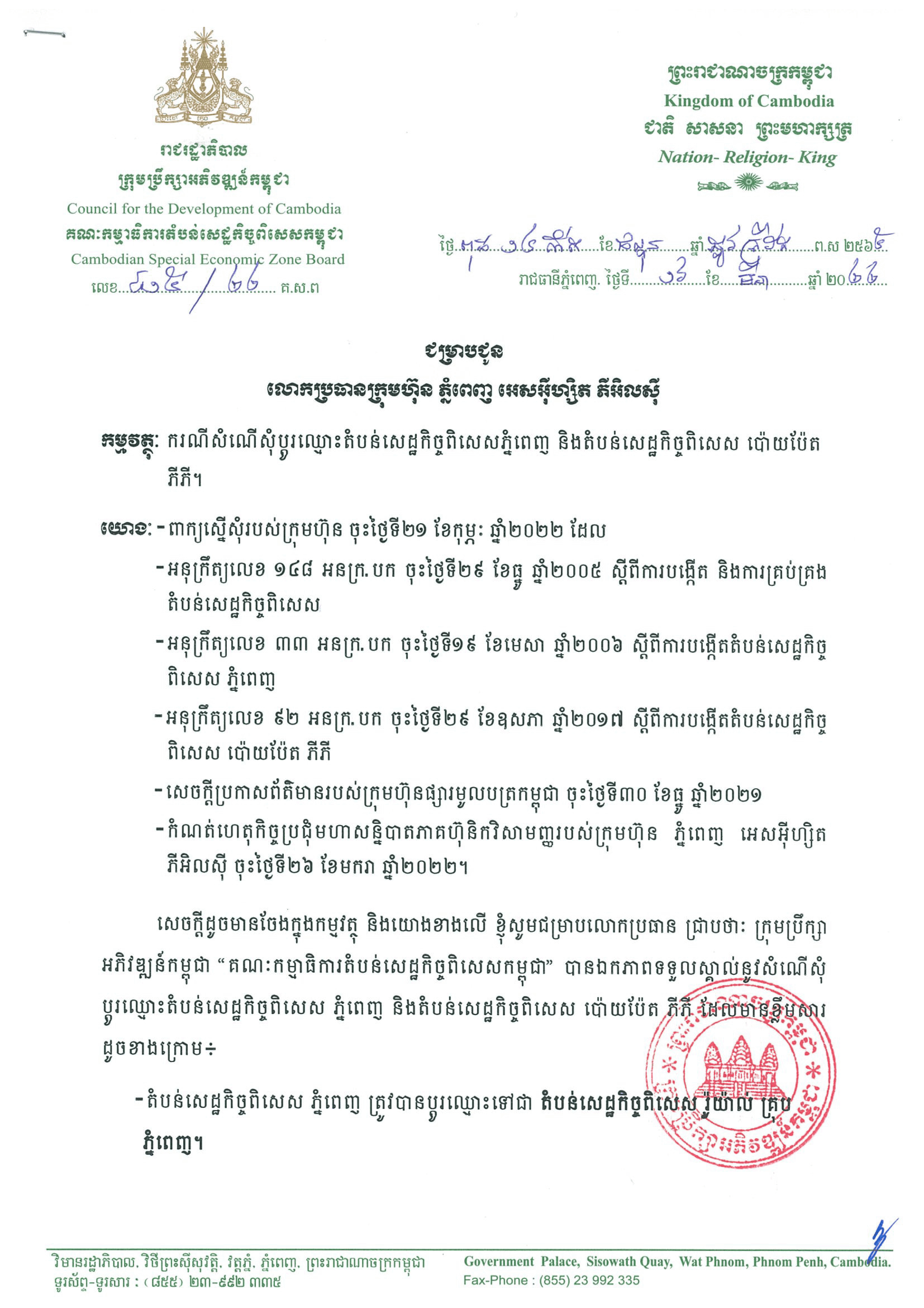 16 March 2022 marked another new mile stone in our company’s history as our zone name was officially changed and acknowledged by the Council for the Development of Cambodia (CDC).