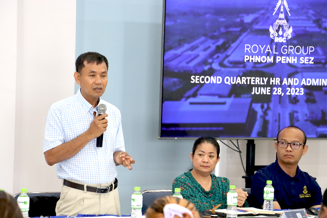 On 28 June 2023, the 2nd quarterly HR meeting was held in Royal Group Phnom Penh Special Economic Zone with 62 participants from various factories in the zone.