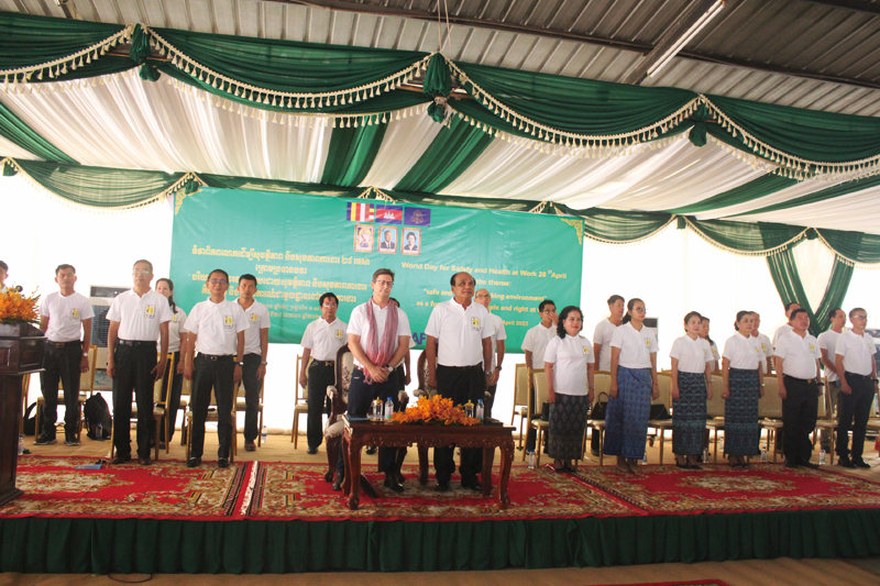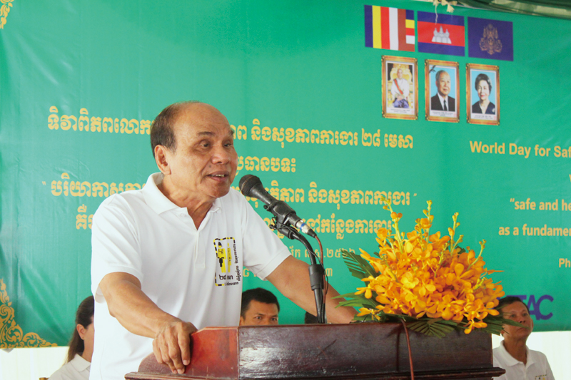 MoLVTのPheng Sokham長官は、「世界労働安全衛生デーは、職場の労働災害や疾病によって命を落としたり、苦しんだりした労働者を追悼するとともに、労働者の安全で健康的な労働環境に対する意識を高めるために、世界各国のILO加盟国の政府、使用者団体、労働組合が毎年組織している国際キャンペーンです」と話しました。